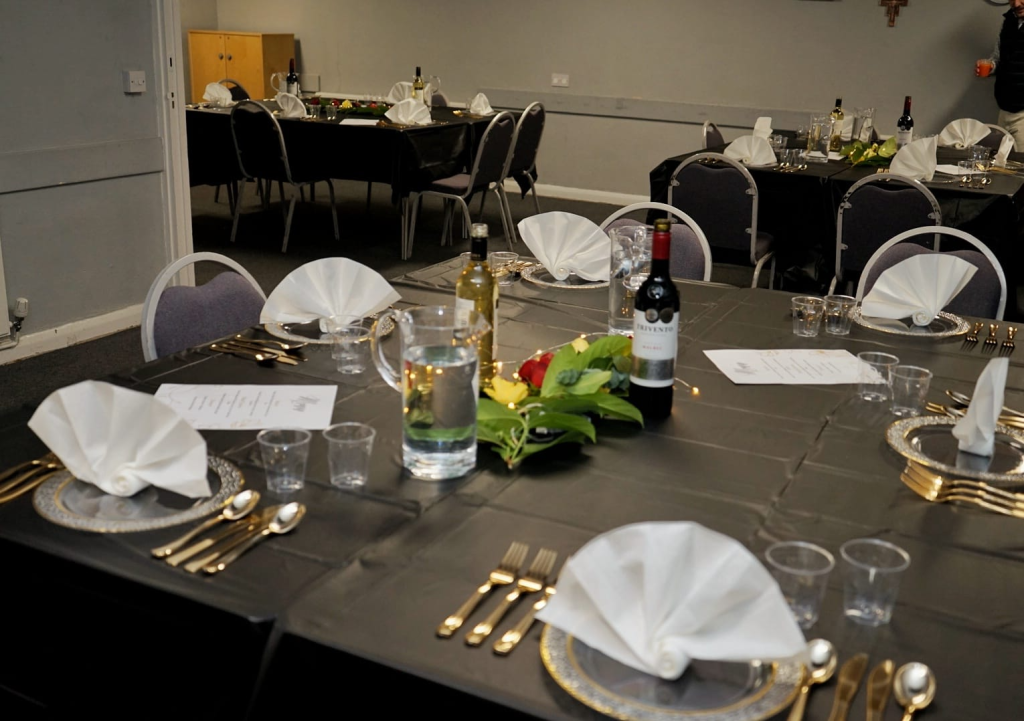 The big day finally arrived. Some of the older club girls helped out with the final stages of the cooking and food preparation. Then it was time to turn the local church hall into a dining room fit for the occasion.